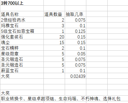 大奖:职业转换卡/星级卓越项链/不朽神魂/生命玛瑙 选择礼包