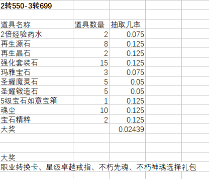 大奖:职业转换卡/不朽先魂/不朽神魂/星级卓越戒指 选择礼包